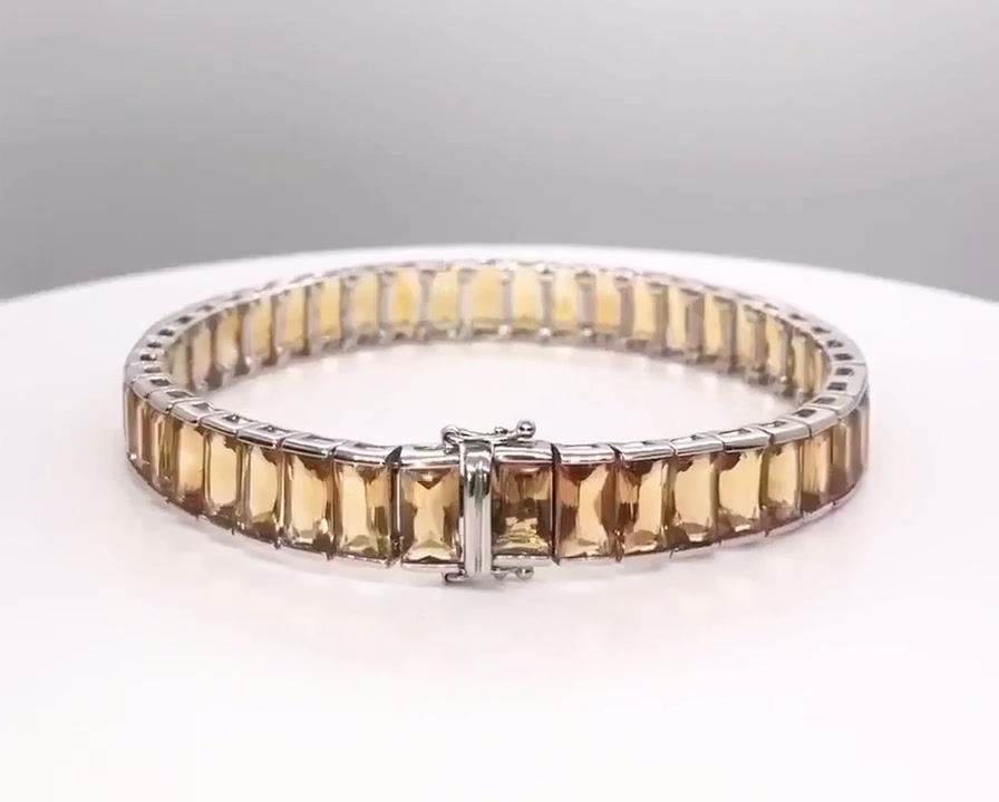 14k White Gold 26.4 Carat Rectangle Citrine Tennis Line Bracelet 18.3 Grams lOT