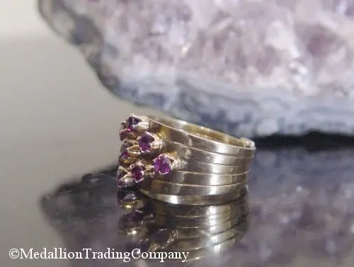 14k Yellow Gold 5 Multi Band Wide Stacking Harem Ring Purple Grape Garnet SZ 6.5